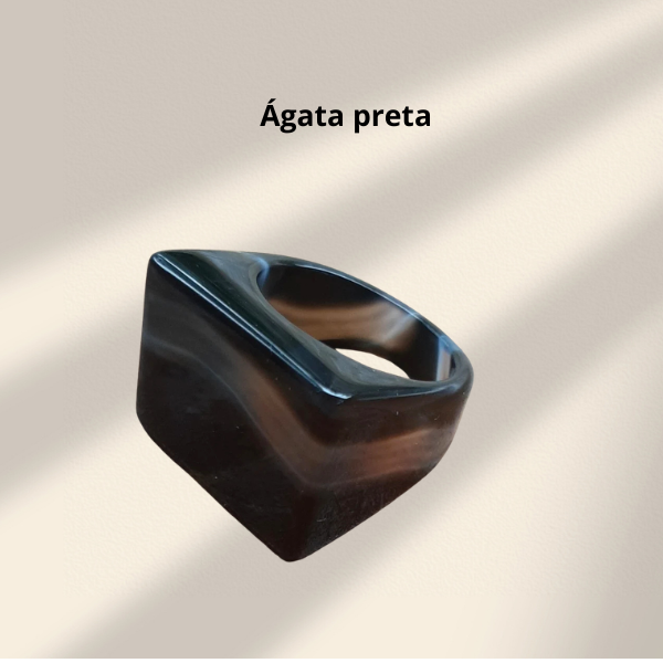 Anel de Ágata Preta 100% Pedra natural - Aro 22 mm